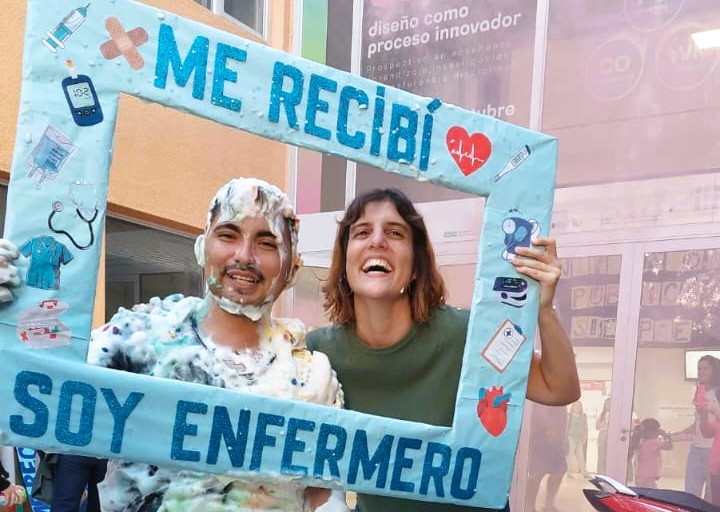 “Quizás porque viví muchas carencias y tuve cerca historias que me mostraron que cuando se necesitaban profesionales, había que buscarlos lejos del pueblo, es que siempre supe que, si podía estudiar, iba a ser algo relacionado con la atención sanitaria”, insiste, haciendo un recorrido por vivencias que fueron imprimiéndose en él y en su vocación. Le interesaba ayudar a revertir una realidad desventajosa. “De chico, siempre he querido cuidar a las personas, acompañarlas, y la UNNOBA ofrecía la carrera de Enfermería, así que en 2021 me mudé a Pergamino, a la residencia de la Fundación Sí”, recuerda.